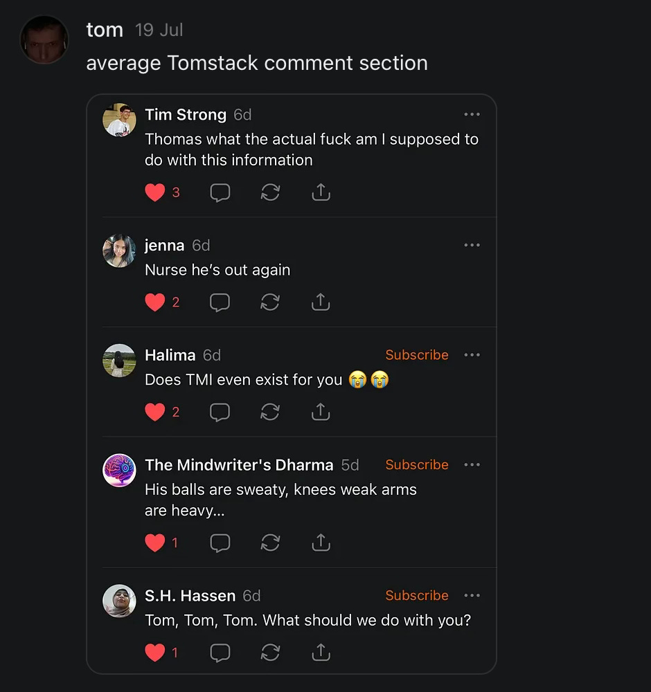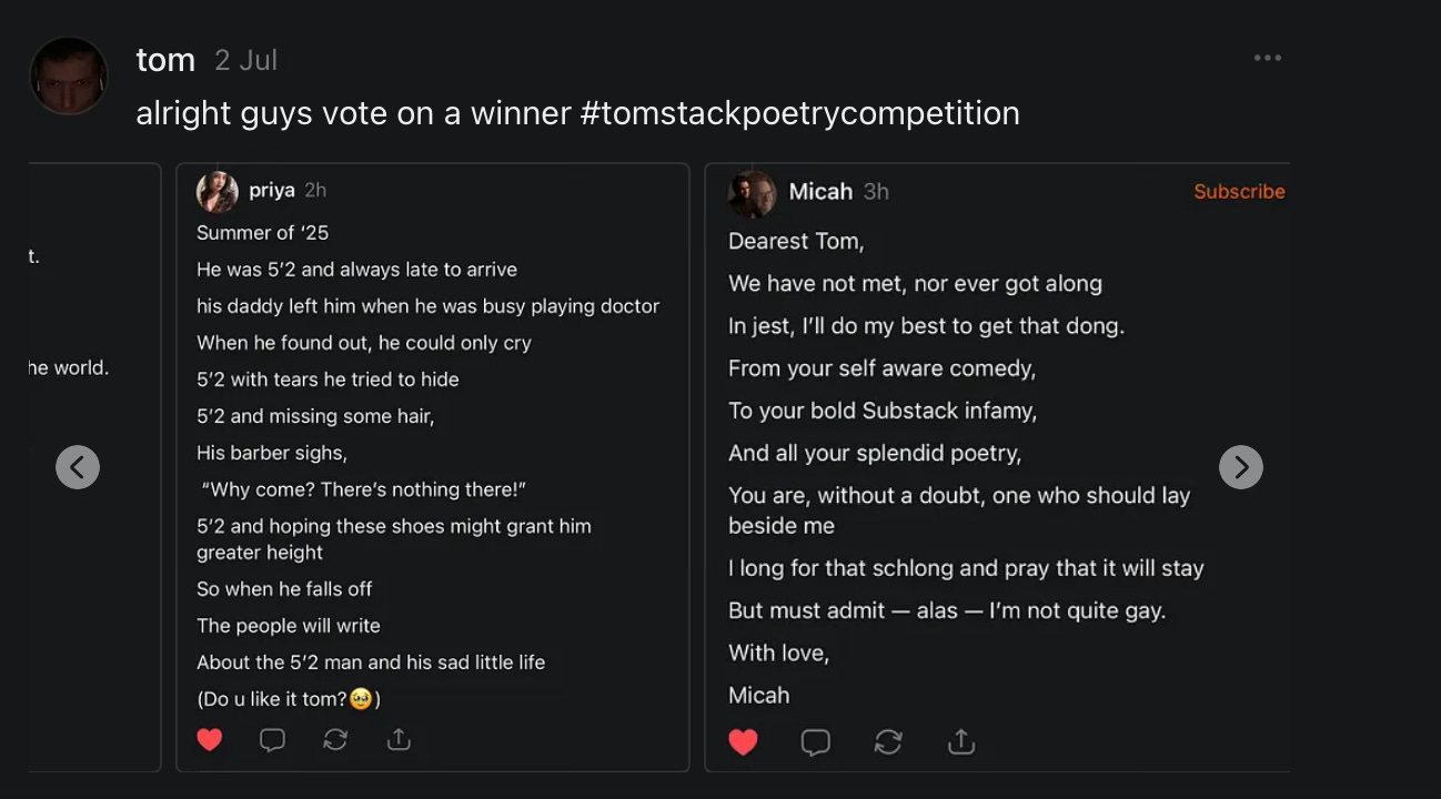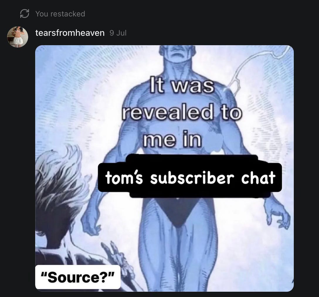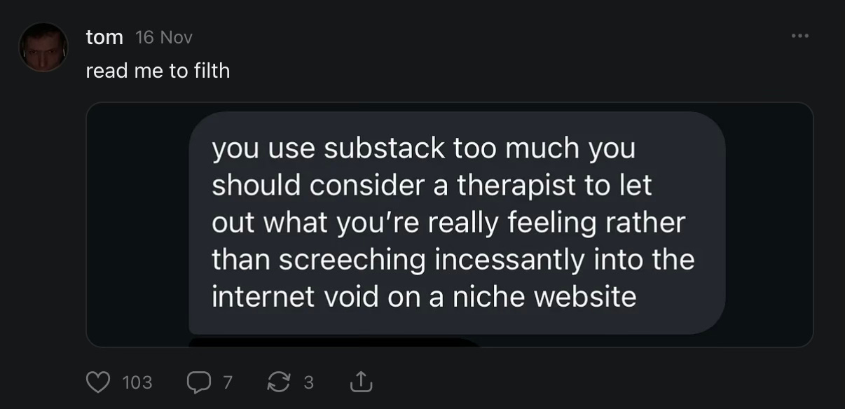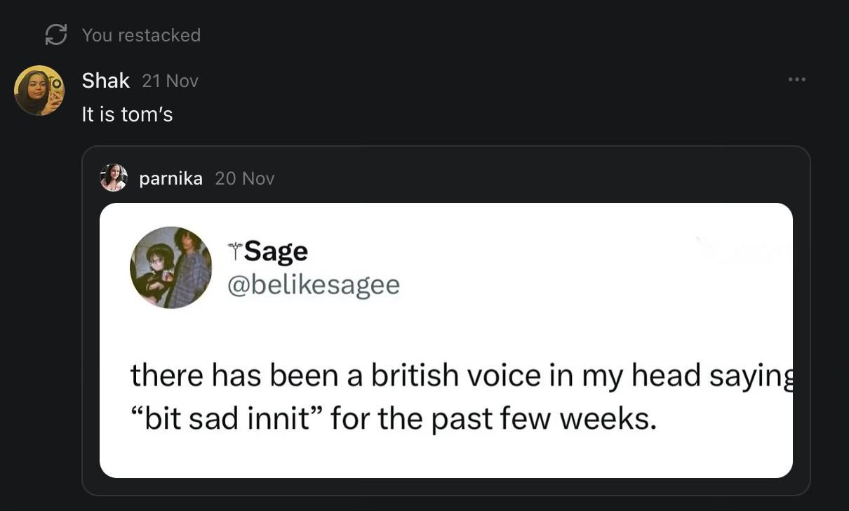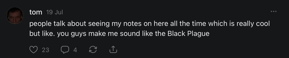 All of the above would be true. Instead, enjoy a curated assortment of my favourite notes from 2025. Thank you for giving this white boy a platform.